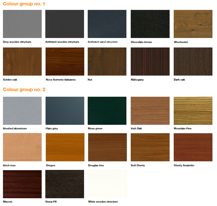 Langai taip pat gali būti laminuoti PVC danga, kuri suteikia medžio tekstūtos raštą ir spalvas. Spalva gali būti tiek iš lauko, tiek iš vidaus pusės, tiek iš abejų.