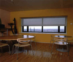 Ypatingos medžio lukšto žaliuzės „FURNILUX“ . Jos skiriasi nuo klasikinių medinių žaliuzių tuo, kad juostelės yra labai plonos - tik 0,4 mm storio. To pasekoje sumažėja sukeltos žaliuzės aukštis ir pati mediena tampa laidi šviesai!